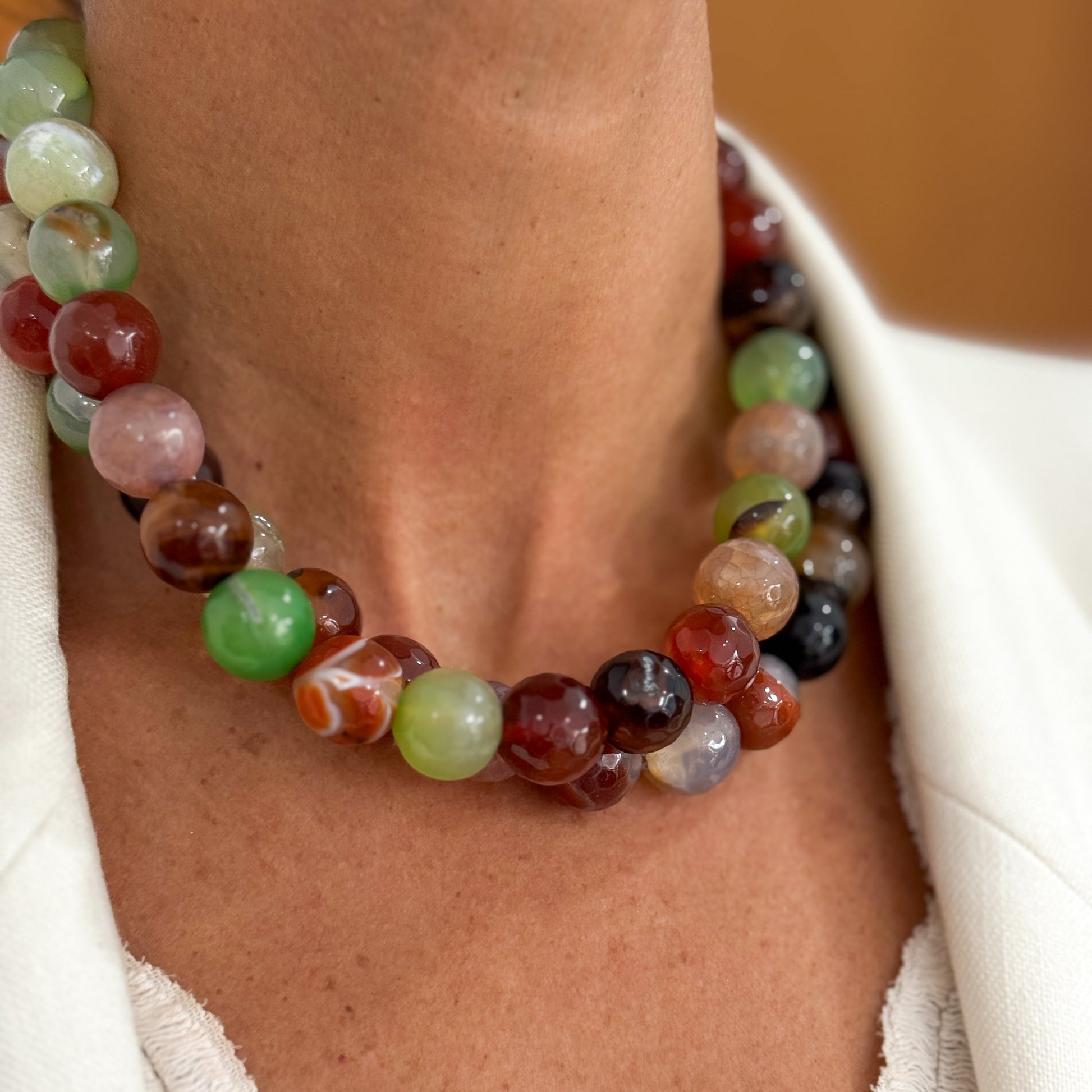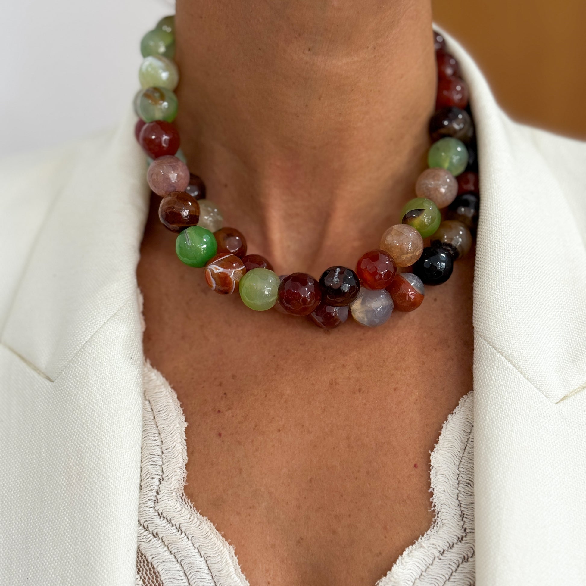 Colar em aço inoxidável e pedras naturais, vendido em separado.