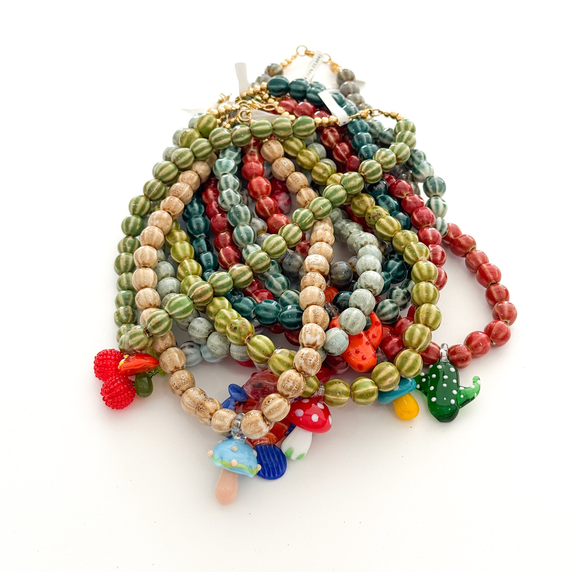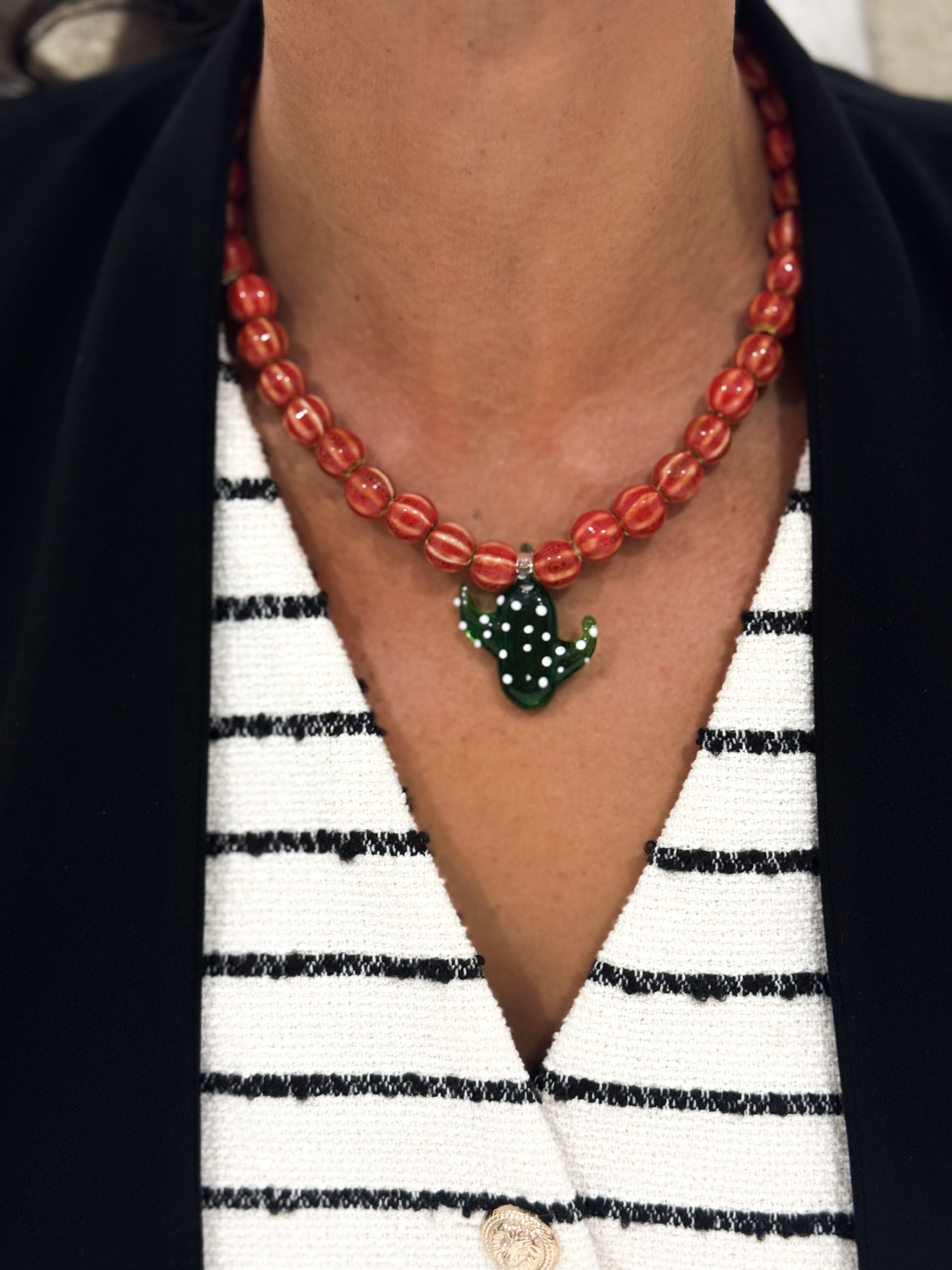 Colares em aço inoxidável, pendentes de vidro e cerâmica